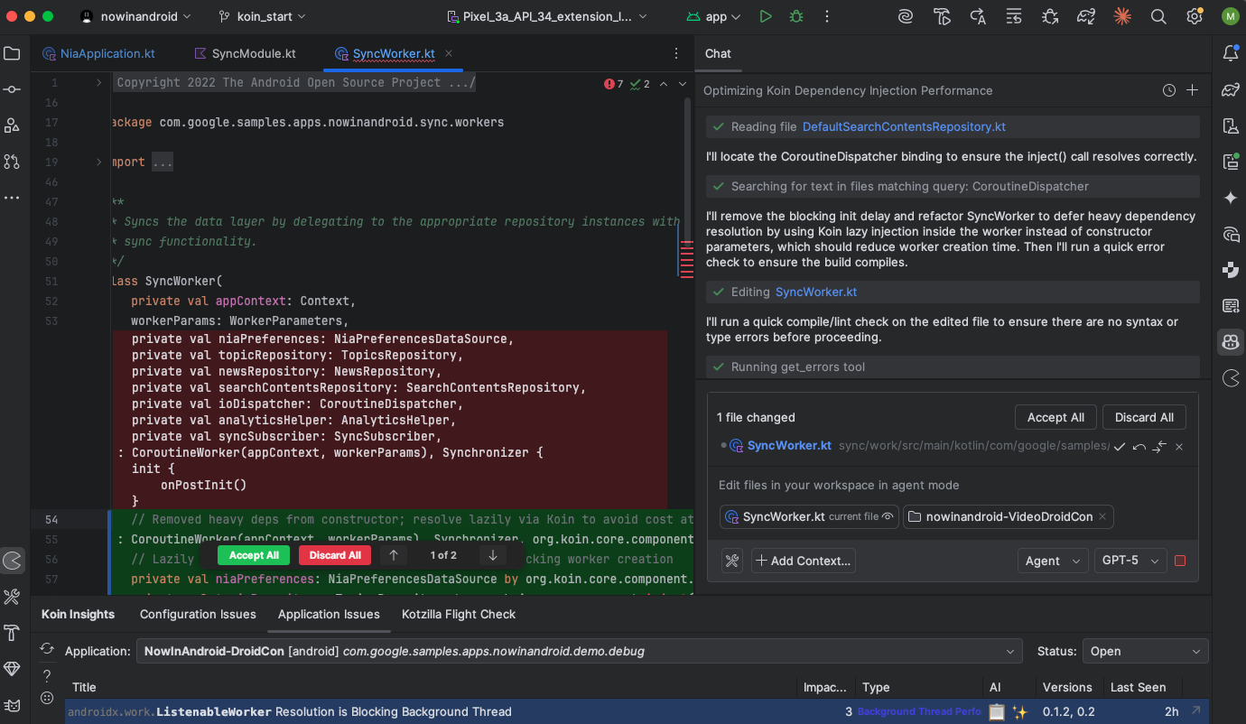 It helps you visualize and manage your Koin configurations and dependencies directly within Android Studio or IntelliJ IDEA. The plugin simplifies code navigation, improves configuration accuracy, and helps you catch configuration and performance issues early in the development process.