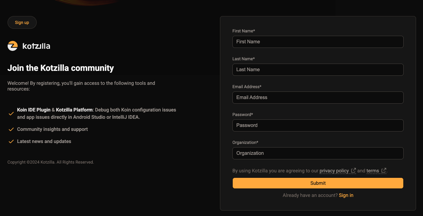 - The sign-up page has been redesigned to match the updated look and feel of the new Kotzilla website